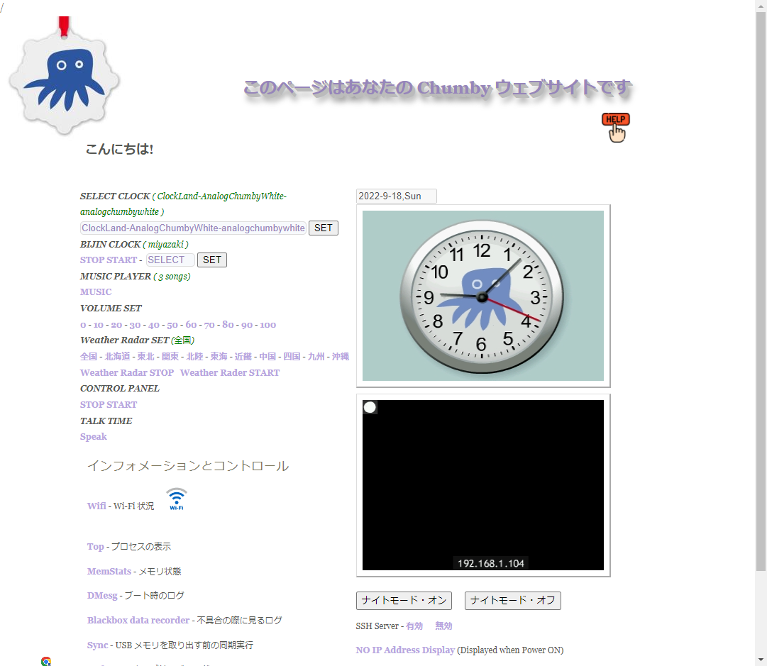 Chumby の画面に表示されているIPアドレスにブラウザでアクセスすると、色々なコントロールが可能です。